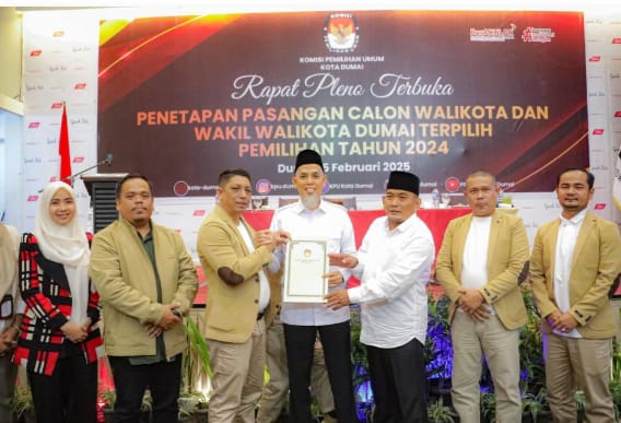 Penetapan tersebut disampaikan Ketua KPU Kota Dumai Zulfan dalam Rapat Pleno Terbuka yang ditaja KPU Dumai. Acara tersebut berlangsung di Ballroom Grand Zuri Hotel, Rabu (5/2/2025) malam.