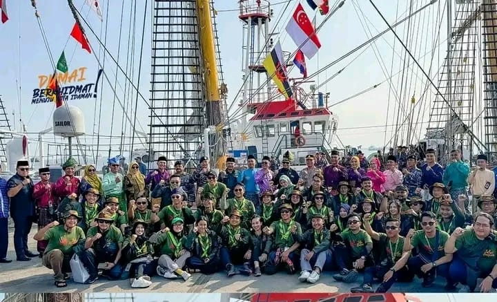 LakiNews|DUMAI – Mewakili Wali Kota Dumai H Paisal,SKM MARS Asisten II Syahrinaldi melepas keberangkatan/ ( MBJR ) tahu 2024 yaitu Kapal Republik Indonesia ( KRI ) Dewaruci dari dermaga milik Pelindo Dumai, Rabu ( 19/06/2024 ) tadi.