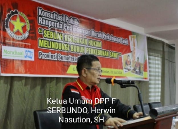 Hal tersebut ditegaskan Ketua Umum Dewan Pengurus Pusat Serikat Buruh Perkebunan Indonesia (DPP SERBUNDO) Herwin Nasution, SH pada seminar Konsultasi Publik Ranperda Perlindungan Buruh Perkebunan Sawit, di Grand Kanaya Hotel, Jalan Darussalam Kota Medan, Senin (22/7/2024) siang.