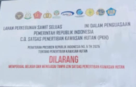 Adanya praduga kalau para oknum pemilik / pengusaha perkebunan kelapa sawit ” mengangkangi ” dan tidak menghiraukan isi amanah atau perintah Perpres RI No 05 tahun 2025 itu diperkuat dengan masih ada nya kegiatan seperti pemupukan dan pengambilan ( pemanenan ) buah kelapa sawit di lahan yang sudah dipasang pamplet/ plang berisikan larangan penguasaan hutan secara ilegal oleh pihak Sat Gas PKH Riau