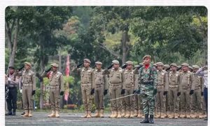 LakiNews|Dumai, —- H Paisal selaku Wali Kota Dumai tampak berdiri sebagai Inspektur upacara pada Puncak peringatan Hari Ulang Tahun (HUT) ke 79 Republik Indonesia di Kota Dumai yang diadakan di Halaman Kantor Wali Kota Dumai, Jalan Tuanku Tambusai, Kelurahan Bagan Besar, Sabtu (17/8/2024) pagi tadi.