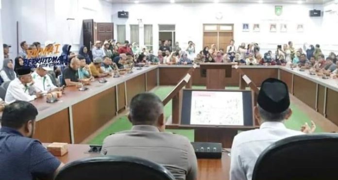 Walikota Dumai, H.Paisal,SKM.MARS langsung pimpin rapat penataan pedagang pasar Pulau Payung di ruang rapat Wan Dahlan Ibrahim, Kota Dumai pada hari Minggu (23/06/2024) kemarin.
